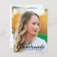 El graduado está escrito en un sencillo guión negro sobre tu foto de retrato para una moderna tarjeta de invitación de graduación. Personalizar con su nombre y clase de bachillerato o universidad de 2025 bajo la tipografía cursiva y añada sus detalles personales en la parte posterior de estos anuncios de graduación contemporáneos y minimalistas.