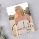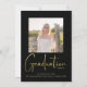 Este diseño presenta una tarjeta de invitación para graduados, con un minimalista moderno, una escuela secundaria o una universidad, una tipografía elegante, simple, plantilla de 2 fotos, negro o dorado, escritura a la moda, guión de caligrafía, invitación para fiesta de graduación