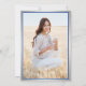 Comparta la alegría de una graduación de escuela secundaria o universidad con estos anuncios personalizados de color azul real, blanco y plateado. (CONSEJO PARA COLOCAR LA IMAGEN: Una forma fácil de centrar una imagen exactamente como la desea es recortarla antes de subirla al sitio web de Zazzle.) Esta plantilla de estilo formal incluye los nombres de los padres y del graduado, así como cualquier texto de su elección, como detalles de la invitación a la fiesta, honores especiales, título del grado, cita inspiradora favorita, información de contacto del graduado, planes de educación futura o nuevo puesto de trabajo. Todo el texto es fácil de personalizar. El diseño presenta un fondo moderno de ombre azul, borde de lámina plateada falsa y gorra de birrete, caligrafía elegante, tipografía tradicional y una foto de su elección, como una foto de último año o imagen de la ceremonia de graduación. Tenga en cuenta que el plateado es un color impreso, no lámina metálica. Estas tarjetas de anuncio de graduación son una forma moderna y elegante de compartir la celebración de su día especial con familiares y amigos