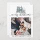Navidades modernos y elegantes y tarjeta fotográfica Holidays con un bosque acuático de pinos. Fácil de personalizar con tu nombre, año y fotografía.