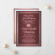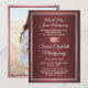 Comparte la alegría de una escuela secundaria o graduación universitaria para ella con esta foto personalizado de invitaciones borgoñas y rosas. (IMAGEN PLACEMENT TIP: Una manera fácil de centrar una imagen exactamente como se desea es recortarla antes de subirla al sitio web de Zazzle.) Esta plantilla de estilo formal incluye los nombres de los padres y de los graduados, así como cualquier texto de su elección, como detalles de invitación de partido, honores especiales, título de grado, cita inspiradora favorita, información de contacto de graduados, planes de educación futuros o nueva posición laboral. Todo el texto es sencillo de personalizar. El diseño presenta un fondo moderno color rojo marrón oscuro, un falso borde de Relieve metalizado dorado y gorro de la placa de mortero, una elegante caligrafía de escritura, una tipografía tradicional y una foto de su elección, como una foto de la tercera edad o una imagen de la ceremonia de graduación. Tenga en cuenta que el oro rosa es color impreso, no Relieve metalizado metálico. Estas tarjetas de invitación de graduación son una manera moderna y moda de compartir tu celebración especial del día con familiares y amigos. ¡Felicitaciones al graduado!