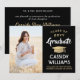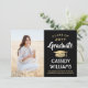 Comparte la alegría de una graduación de secundaria o universitaria con estas fotos personalizados de invitaciones negras, doradas y blancas. (IMAGEN PLACEMENT TIP: Una manera fácil de centrar una imagen exactamente como se desea es recortarla antes de subirla al sitio web de Zazzle.) Esta plantilla es sencilla para el personalizar con cualquier texto de su elección, como detalles de la invitación a la fiesta, nombres de los padres, honores especiales, título de grado, cotización inspiradora favorita, información de contacto del graduado, planes de educación futuros o nueva posición laboral. Si hay algún texto que no se desee simplemente borrarlo. El diseño incluye una tapa de tablero de mortero de Relieve metalizado de oro falso, caligrafía de escritura a mano, tipografía minimalista moderna y una foto de su elección, como una foto de la parte superior o una imagen de la ceremonia de inicio. Tenga en cuenta que el oro es color impreso, no Relieve metalizado metálico. Estas elegantes tarjetas de invitación de graduación son una forma moderna y moda de compartir tu celebración especial del día con la familia y amigos. ¡Felicitaciones al graduado!