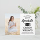 Comparte la alegría de una escuela secundaria o universitaria con estas invitaciones blancas y negras de fotos personalizados. (IMAGEN PLACEMENT TIP: Una manera fácil de centrar una imagen exactamente como se desea es recortarla antes de subirla al sitio web de Zazzle.) Esta plantilla es sencilla para el personalizar con cualquier texto de su elección, como detalles de la invitación a la fiesta, nombres de los padres, honores especiales, título de grado, cotización inspiradora favorita, información de contacto del graduado, planes de educación futuros o nueva posición laboral. Si hay algún texto que no se desee simplemente borrarlo. El diseño presenta un fondo blanco, un gorro negro de cartón de mortero, caligrafía de escritura a mano, tipografía minimalista moderna y una foto de su elección, como una imagen de la ceremonia de graduación o una imagen de la ceremonia de graduación. Tenga en cuenta que la plata es color impreso, no Relieve metalizado metálico. Estas elegantes tarjetas de invitación de graduación son una forma moderna y moda de compartir tu celebración especial del día con la familia y amigos. ¡Felicitaciones al graduado!