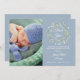 Un anuncio de nacimiento decorativo de laurel verde jardín con una tarjeta de agradecimiento con una foto de su nueva llegada especial. Personalice el mensaje de agradecimiento y agregue el nombre de sus bebés y las estadísticas de nacimiento en un polvoriento fondo azul. Diseñado por Thisisnotme©