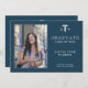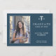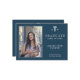 Moderna y elegante plantilla de invitación de graduación de la escuela de enfermería azul marino y blanco con su foto personalizado y texto.