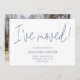 Te has mudado - deja que tus amigos y familia sepan tu nueva dirección y número de teléfono con esta sencilla y moderna foto nueva tarjeta de invitación para el hogar con fuentes modernas en azul polvoriento.
