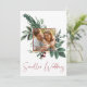 Si las circunstancias requieren que reduzcas el tamaño de tu boda, puedes informar a tu lista de invitados extendida original esta temporada navideña con este elegante anuncio de boda más pequeña y reducida que presenta tu foto en un marco de acuarela de vegetación navideña y "Boda más pequeña" escrito en una elegante letra roja. Puedes personalizar fácilmente el mensaje de reducción de la boda con más detalle y agregar cualquier transmisión en vivo de la ceremonia, celebraciones futuras e información del sitio web de la boda.