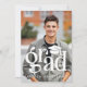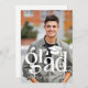 Moderna Invitación de superposición blanca de fotos GRAD de tipo 2. Anuncie el logro de su graduado con esta invitación fotográfica con 2 fotos (una por cada lado) y un diseño tipográfico moderno para el título GRAD acentuado con una gorra de graduación y año de clase en la parte delantera en su elección de texto y colores gráficos (mostrar en blanco) e información opcional sobre su graduado en la parte posterior. ASISTENCIA: Para obtener ayuda con la modificación o personalización del diseño, el cambio de color, el redimensionamiento, la transferencia del diseño a otro producto o si desea coordinar elementos, póngase en contacto con el diseñador ANTES DE PEDIDOS a través de la pestaña del MENSAJE de charla de Zazzle o envíe un correo electrónico a makeitaboutyoustore@gmail.com.
