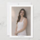 Celebre este hito con un anuncio de graduación limpio y minimalista que presenta un diseño de foto vertical y tipografía serif atemporal. La parte delantera muestra el retrato de su graduado con "nuestro graduado" en letras minúsculas de moda, mientras que la parte trasera incluye una segunda foto, el nombre del graduado, la escuela y "Promoción de 2026". Perfecto para graduados de secundaria o universitarios y sus familias que prefieren un diseño moderno y discreto. Totalmente personalizable con sus fotos y detalles: una hermosa manera de compartir el logro con amigos y familiares.