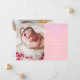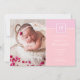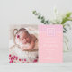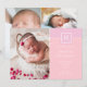 Tarjeta de anuncio de nacimiento de bebé niña con foto monograma moderna para presentar a su hermosa bebé recién nacida. La parte delantera incluye una foto de bebé, inicial de monograma y estadísticas de nacimiento y mensajes en blanco en dos paneles suaves de color rosa. El reverso tiene otras tres fotos de bebé. Diseñado por Thisisnotme©