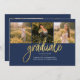 Graduación 4 Collage de fotos Script Navy Blue Gold Invitación para clase 2025. Personalizar esto fácilmente cambiando el texto y reemplazando las fotos con las tuyas. ¡Una forma moderna y moderna de anunciar tu graduación este año!