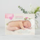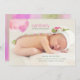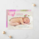 Anuncio de nacimiento de una joven artista de foto completa. El tema rosa y verde con el trazo de acuarela en la parte delantera y las obras de arte coordinadas pintadas de rosa y verde en la parte trasera son perfectas para anunciar el nacimiento de su chica recién nacido. Anuncie su nueva llegada hoy a todos sus amigos y familiares con esta hermosa invitación fotográfica. El Emporio de Jenn.