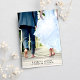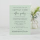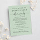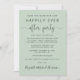 El verde sabio moderno salva el anuncio de la fecha de la recepción o del fiesta para celebrar su salida o su boda privado. En el frente, "Save the Date For Our Happily Eever After Fiesta" (Guardar la fecha para nuestra feliz eternidad después del ) está escrito en una tipografía simple y un guión elegante con toques. Personalice la invitación de su boda y la recepción, guarde los detalles de la fecha y agregue sus nombres en un guión tipo firma. En el reverso aparece tu foto boda favorita, tus nombres y fechas de boda y recepción.