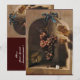 Uvas rojas colgando hermosas, parras con una cinta azul, una mariposa blanca y una libélula... Una colección clásica y elegante de naturaleza muerta creada con reelaboración digital a partir de una pintura al óleo flamenca del siglo XVII. Este diseño clásico es perfecto para bodas, celebraciones de aniversarios, cumpleaños de Sweet 16, tarjetas de "save the date", tarjetas de agradecimiento, baby showers, fiestas navideñas, reuniones familiares. También se puede utilizar como invitaciones para empresas de nutricionistas, dietistas, catering, servicio de comida, preparación o restaurante, catering, industrias vinícolas.