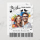 Una carta divertida y caprichosa de Save the Date con un tema musical, con tu propia foto en un diseño blanco y negro con notas musicales, teclado y canto de los pájaros amorosos. El texto anterior Guardar la fecha es una imagen independiente y se puede eliminar si prefiere textos personalizados. Las notas de la parte posterior se pueden arrastrar o escalar si lo desea (en el editor avanzado). Una plantilla de código QR es opcional y se agrega para su comodidad.