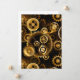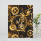 Sin soldadura, metalizado, latón, engranajes dorados sobre un fondo oscuro y oxidado. Estilo Steampunk.