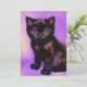 Tarjeta con un gato al estilo Van Gogh de fondo violeta. ¡Este gatito negro mira al espectador adorablemente! ¡Un gran regalo para los amantes del gato y para los coleccionistas holandeses de arte!