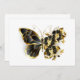 Gold flower butterfly with black jewelry orchid, decorated with gold leaves on white background.