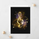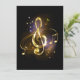 Jewelry, gold, musical treble clef with golden notes and stars on black glowing background.