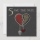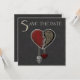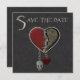 Una invitación gótica de cita guardada: corazón de joyería gótica en rojo y negro con cráneo plateado sobre un fondo gris oscuro.