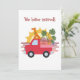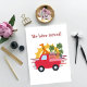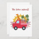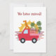 Los ilustraciones de un perro sentado en un camión con equipaje y plantas corriendo con la puesta de sol detrás es una tarjeta de Invitación ideal para que tus seres queridos sepan que te has mudado.