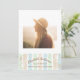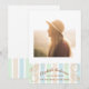 Grad club beach party with cabana stripes in shades of mint green, coastal blue and sandy brown with seashells. Photo template via Pixabay licensed under CC0 and must be replaced with your own photo.
