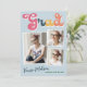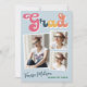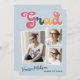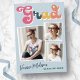 Foto de moda retro 3, tarjetas de invitación de graduación, con elementos de diseño de tipografía de estilo vintage que dicen "Grad" en colores boho del arcoiris. Las fotos de los graduados se resaltan con finas fronteras blancas. La parte posterior de la tarjeta ofrece espacios de texto personalizados para obtener información sobre su graduación. Perfecto para el bachillerato, la universidad y la universidad.