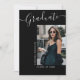 Esta moderna y elegante tarjeta de invitación de graduación, de estilo sencillo, cuenta con un texto moderno con un elegante guión de caligrafía. La foto de los graduados resalta la parte delantera de la tarjeta mientras que la parte posterior ofrece espacios de texto personalizados para información sobre la graduación y el viaje futuro. Escritura en blanco sobre negro normal o personalizar fácilmente el fondo a un color de su elección. Para ver más artículos como este, visita mi tienda aquí en "www.Zazzle.com/LakeViewCardCo". ¡Gracias