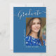 Esta moderna y elegante tarjeta de invitación de graduación, de estilo sencillo, cuenta con un texto moderno con un elegante guión de caligrafía. La foto de los graduados resalta la parte delantera de la tarjeta mientras que la parte posterior ofrece espacios de texto personalizados para información sobre la graduación y el viaje futuro. Escritura en blanco sobre un elegante azul o personalizar fácilmente el fondo a un color de su elección. Para ver más artículos como este, visita mi tienda aquí en "www.Zazzle.com/LakeViewCardCo". ¡Gracias
