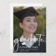 La elegante invitación de graduación incluye dos fotos de la universidad o de un graduado de secundaria. Tarjeta de Invitación de graduación con letra manuscrita, foto de retrato de sangre completa en la parte delantera con nombre y detalles de graduación. La parte trasera tiene una segunda foto con detalles adicionales. Haga clic en el botón de edición para personalizar de este diseño.