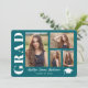 Anuncie orgullosamente su graduación de secundaria o universitaria con estas tarjetas de collage de fotos personalizado 4 en colores verde azulados y blancos. Simplemente introduzca sus fotos personales y, si es necesario, utilice la herramienta de diseño para recortarlas para el ajuste perfecto. Incluso puede personalizar el color de fondo a uno de sus opciones. Estas elegantes tarjetas pueden convertirse fácilmente en tus invitaciones personales de los participantes en un programa de estudios simplemente cambiando el texto según sea necesario. Para ver más artículos como este, visita mi tienda aquí en "www.Zazzle.com/LakeViewCardCo". ¡Gracias