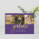Collage de fotos de graduación Script Invitación Purple Gold para la clase 2025. Personalizar esto fácilmente cambiando el texto y reemplazando las fotos con las tuyas. ¡Una forma moderna y moderna de anunciar tu graduación este año!