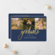 Graduación 4 Collage de fotos Script Navy Blue Gold Invitación para clase 2025. Personalizar esto fácilmente cambiando el texto y reemplazando las fotos con las tuyas. ¡Una forma moderna y moderna de anunciar tu graduación este año!
