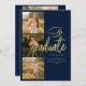 Graduación 4 Collage de fotos Script Navy Blue Gold Invitación para clase 2025. Personalizar esto fácilmente cambiando el texto y reemplazando las fotos con las tuyas. ¡Una forma moderna y moderna de anunciar tu graduación este año!