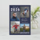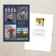 Anuncio de graduación editable en azul marino y blanco con 5 fotos (4 en la parte frontal y 1 en la parte trasera) y el nombre del graduado en una tipografía de letra manuscrita. El año de graduación se puede cambiar, así como el estilo de fuente del texto, color, tamaño y ubicación. La parte trasera tiene un campo de texto personalizable opcional para incluir información adicional sobre el graduado (elimine el texto de ejemplo en ese campo si no se desea). ASISTENCIA: Para obtener ayuda con la modificación del diseño o personalización, cambio de color, cambio de tamaño o transferencia del diseño a otro producto, contacte al diseñador ANTES de realizar el pedido a través de Zazzle Chat o correo electrónico makeitaboutyoustore@gmail.com.