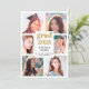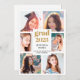 Envíe a su familia y amigos una tarjeta de graduación de collage de fotos personalizada para que la miren. Este moderno diseño de plantilla incluye seis fotos para que pueda cambiarse a su propio marco en blanco. En el centro de la falsa tipografía de oro y negro está la palabra "Grad" con el año, tu nombre y escuela para personalizar. La parte trasera de la tarjeta es blanca. Diseñado por Susan Coffey.
