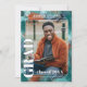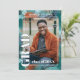 Tarjeta de anuncio de graduación única y de moda y tarjeta de invitación a la fiesta de celebración, enmarcada con un fondo de pinceladas abstractas de colores azul teal, verde aqua turquesa y marrón. Con espacio para personalizar o personalizar con una foto, el nombre del graduado, año de graduación, escuela secundaria, nombre de la universidad o universidad futura, e información del evento de la fiesta de celebración. ¡Hágales saber a la familia, amigos y vecinos que hay un graduado feliz listo para conquistar el mundo, e invite a todos a venir a celebrar el feliz evento con usted!
