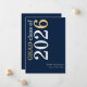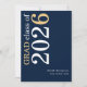 Invitación de graduación azul de la Marina 2025 con el texto de oro blanco. Disponible digitalmente e impreso. Diseño tipográfico moderno y elegante para anunciar la noticia de su graduado, con tipografía grande y elegante rotada y a la izquierda en la parte superior en blanco y oro sobre un fondo marino clásico. Personaliza fácilmente el resto del texto. Incluyendo tu mensaje en la parte posterior
