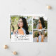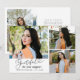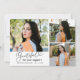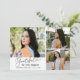 Tarjeta de anuncio de graduación moderna y elegante con 3 fotos en la parte delantera y 1 en la parte trasera. El texto dice "agradecido por su apoyo" en letra cursiva. Agregue el nombre del graduado, información y mensaje para personalizar esta tarjeta. Blanca.