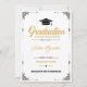 La Tarjeta de Invitación Clásica Elegante Script White Graduation es una elección atemporal y sofisticada para graduados de secundaria y universitarios. Con un esquema de color blanco, negro y dorado, esta tarjeta muestra como pieza central a un gorra de graduación muy bien representado. La caligrafía y la tipografía aportan un toque elegante, mientras que los patrones sutiles realzan el diseño general. Esta tarjeta de invitación capta el significado de la graduación y sirve como un querido aguijón.