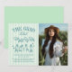 Celebre a su graduado con un estilo chic y moderno con estas elegantes tarjetas de anuncio de graduación. Con un fondo a rayas verdes y blancas, el diseño muestra el título en negrita "THE GRAD CLUB" junto con una ilustración divertida de graduados lanzando sus gorras al aire.
