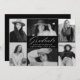 Elegante invitación de graduación con 6 fotos que bordean el diseño. "Graduado" se muestra en un guión blanco moderno de caligrafía sobre un fondo negro. Personalice la parte delantera de la invitación de graduación fotográfica agregando el nombre del graduado, la escuela y el año de graduación. En la parte posterior de las invitaciones hay otras fotos de 6 cuadrados con un diseño de cuadrícula. La invitación de 12 graduaciones fotográficas es perfecta tanto para graduados de secundaria como universitarios.