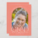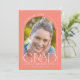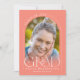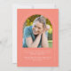 Esta invitación de graduación de arco minimalista y coralino presenta un marco de arco delicado, 2 plantillas de fotos y una tipografía moderna y elegante.