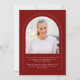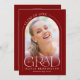 Esta sencilla invitación roja de graduación en arco minimalista presenta un delicado marco en arco, 2 plantillas de fotos y una elegante tipografía moderna.