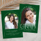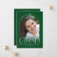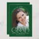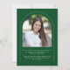 Esta sencilla y verde invitación de graduación de arco minimalista presenta un delicado marco en arco, 2 plantillas de fotos y una elegante tipografía moderna.