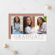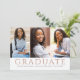 Una carta moderna y sencilla para invitación de graduación. El frontal presenta la tipografía GRADUATE IN terracota. Personaliza con un collage de tres fotos y el nombre de las graduaciones, el año de graduación y la escuela. Lo inverso es terracota y tiene una plantilla de tipografía para personalizar con tu propio mensaje personal o puedes borrar todo el texto para dejar en blanco.