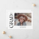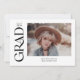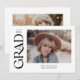 Esta elegante invitación de graduación presenta la nota de la palabra en un serif a la moda a lo largo de la izquierda. La parte delantera tiene espacio para una foto de la graduación, así como su nombre, año de clase y colegio. La parte trasera de la invitación tiene espacio para una segunda foto y un mensaje corto.