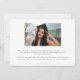 Una elegante invitación fotográfica de graduación, neutra desde el punto de vista del género, para celebrar las cualificaciones profesionales de la enfermería. Con una foto de sangre completa en la parte delantera con texto superpuesto y el símbolo Asclepius (con la abreviatura "RN") rodeado de una corona de laurel. El texto de la plantilla para los detalles del graduado es completamente personalizable, por lo que se puede cambiar el tamaño del tipo de letra, el estilo, el color y la ubicación. La parte posterior presenta una segunda foto más pequeña y texto de plantilla para un mensaje más largo. El diseño está disponible en otros colores, con un símbolo caduceus, con diseños para cualificaciones específicas (MD, DO) y con diferentes diseños/orientaciones en mi tienda.