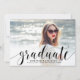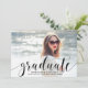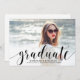 Moderna invitación fotográfica de graduación con caligrafía moderna y estampado negro. Este estilo está disponible en varios colores.
