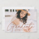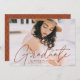 Celebra el grado con nuestra elegante invitación de graduación de fotos. La invitación de graduación muestra la foto del graduado con "Graduado" en un overlay de escritura de caligrafía moderna de terracota. Personalice el frente de la moderna invitación de graduación agregando el nombre del graduado, el nombre de la escuela y el año de graduación. La invitación se inclina por una terracota moderna y geométrica punteada en blanco. El diseño es perfecto tanto para graduados de secundaria como universitarios.